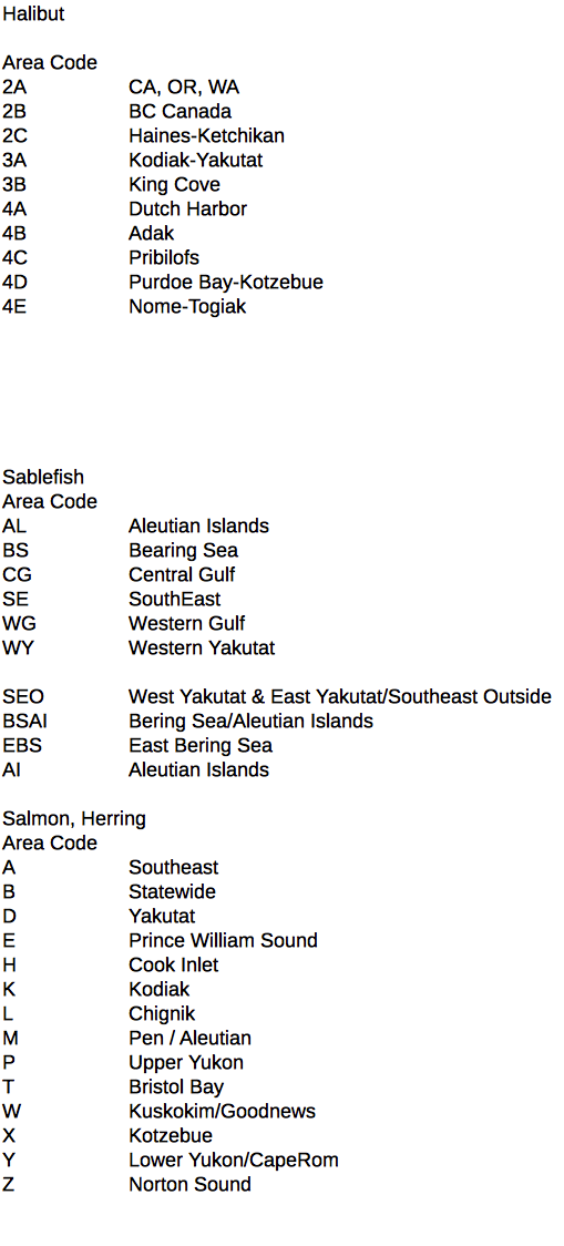 Federal Sablefish / Black Cod Fishing Areas